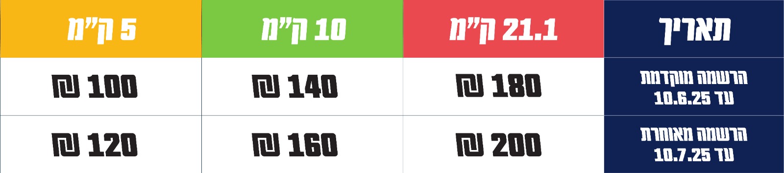 * 21.1 ק"מ – 16 ומעלה (למשתתפים עד גיל 18 מותנה באישור הורה בעת ביצוע הליך הרישום).